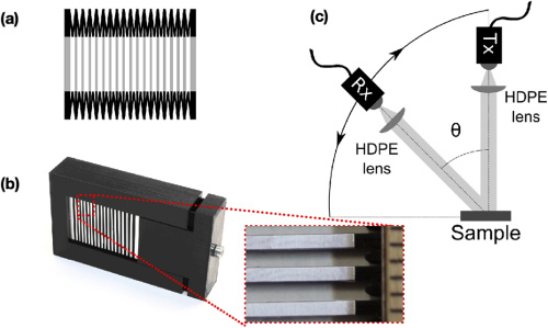 Випробування в діапазоні від 0,1 до 1 ТГц показали корисність пристрою для керування терагерцового променем під кутами 25° і більше. Щоб виміряти характеристики решітки, вони створили набір даних, використовуючи терагерцеві сигнали з кутами плеча детектора від 30° до 55° з кроком 0,5° (Малюнок 7).